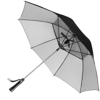 PARAGUAS BENUE (Paraguas con ventilador integrado. Manual, 8 paneles, mango de plástico con correa y funda con agarradera. No incluye baterías (4 pilas AA).)