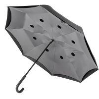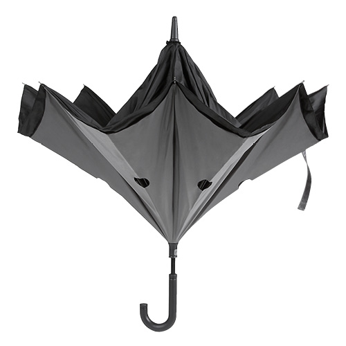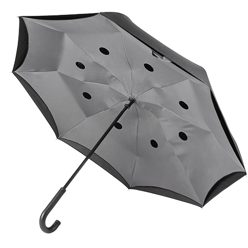 (Paraguas reversible. Manual, 8 paneles dobles y mango de plástico. Incluye funda con agarradera.)