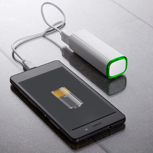 POWER BANK HADAR (Batería auxiliar para smartphone, capacidad 2200 mAh. Incluye cable cargador compatible con USB y micro USB. El marco de color enciende al conectarse.)