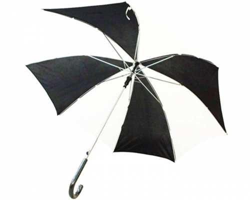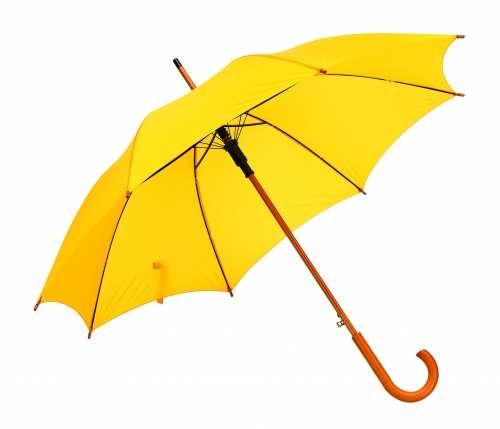 Ø 108 cm. Nylon. Vara de madera, mango curvo de madera, automático. 8 gajos. Longitud de vara: 89 cm.