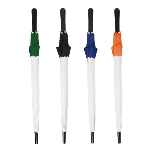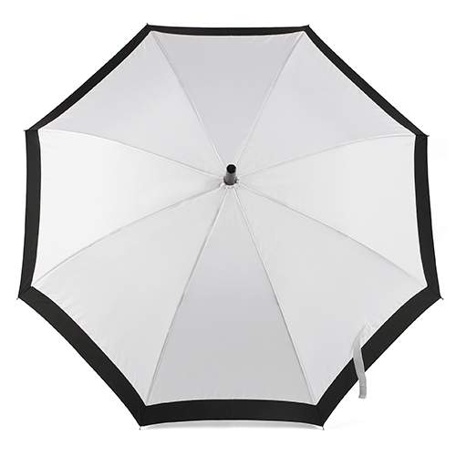 Paraguas bicolor con mango curvo de plastico, color blanco liso. apertura automatica.