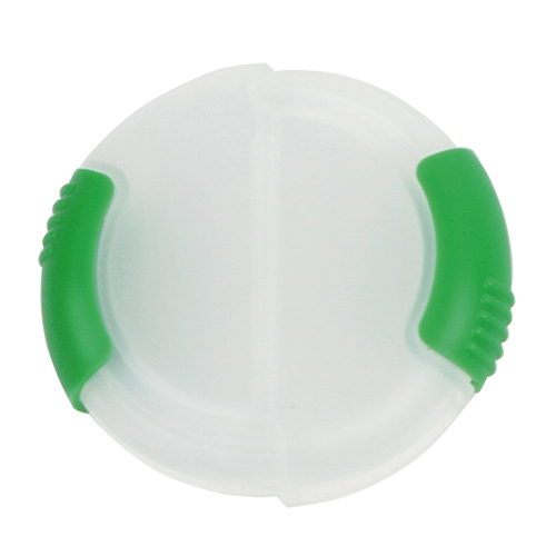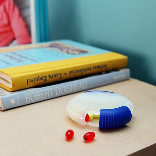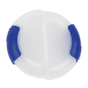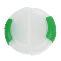 Pastillero redondo con doble compartimento fabricado en plastico, colores: azul, blanco, rojo, verde y naranja