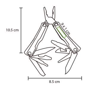 Pinza multifuncional (9 funciones) con accesorios en silicon negro y estuche metalico individual