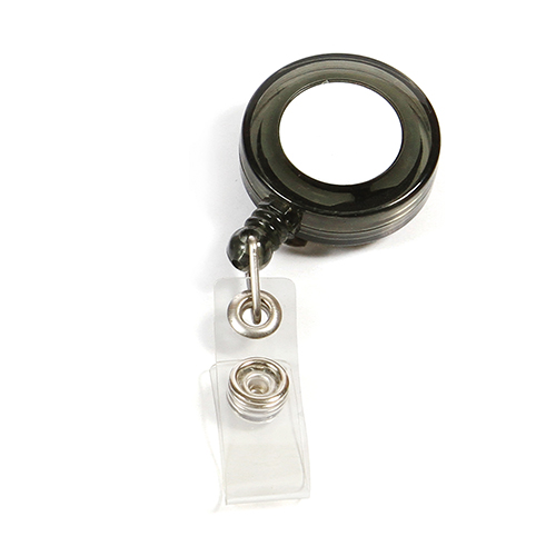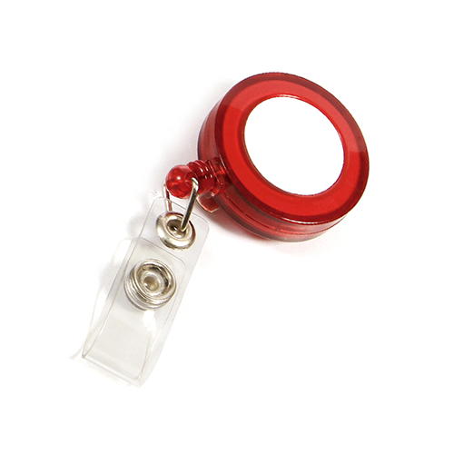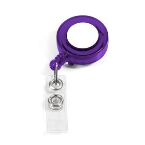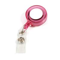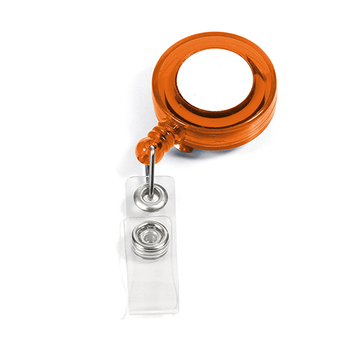 Porta gafete retractil de plastico translucido, colores: azul, negro, verde, naranja, morado, rojo y rosa