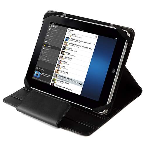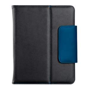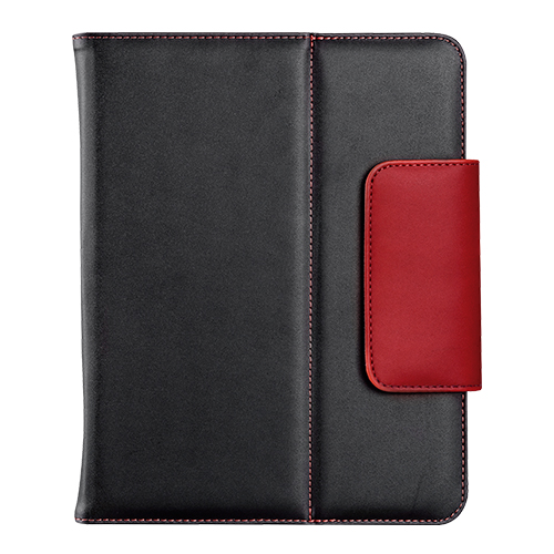 Porta tablet con cubierta de poliuretano e interior con terciopelo y poliuretano, con bandas ajustables, colores: negro, azul y rojo