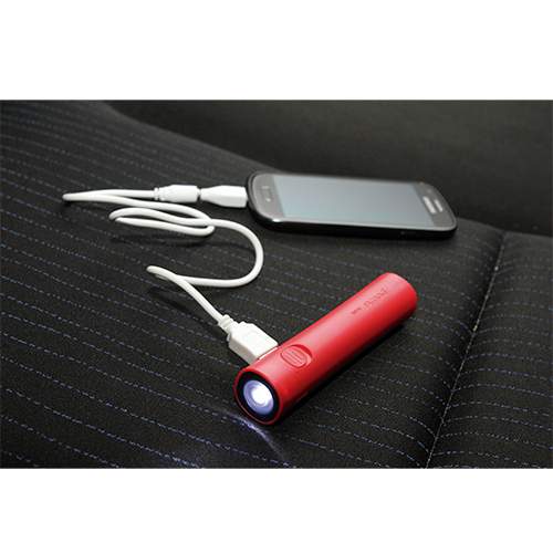Power bank cilindrico de 2600 mah, recargable con cable usb a pc, lampara y cable usb entrada de iphone y micro usb