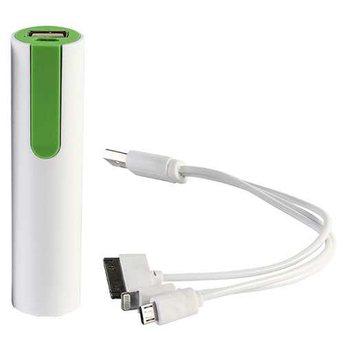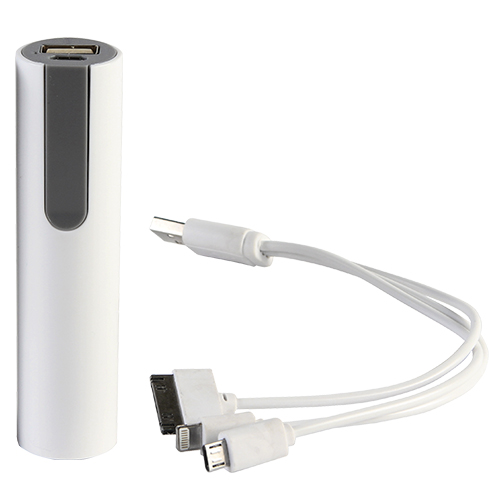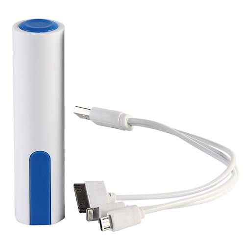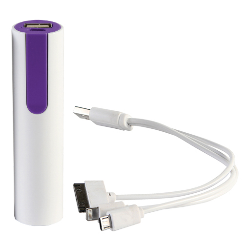 Power bank cilindrico de 2,200 mah con cable usb con entrada de iphone y micro usb