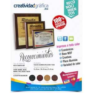 MATERIAL: MADERA MDF TAMAÑOS DISPONIBLES: 15 X 20 CMS / 20 X 25 CMS / 27 X 33 CMS ACABADO: PLACA DE ALUMINIO