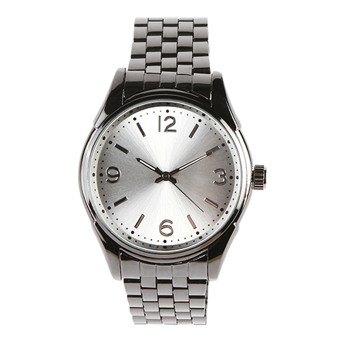 Reloj metalico color gris pavonado, con cristal mineral y maquinaria metalica japonesa, incluye estuche metalico