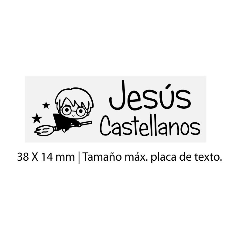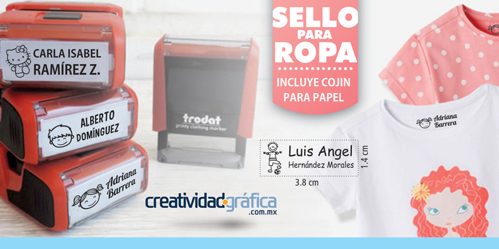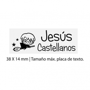 Sello con tinta especial para tela con placa para texto área máxima de impresión 1.4 x 3.8 cm.