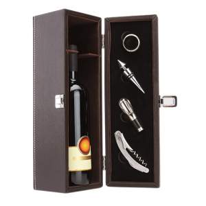 | Descripción: SET PARA VINOS PAMPLONA (Incluye sacacorchos con navaja, stopper, boquilla y arillo. No incluye botella.) | |