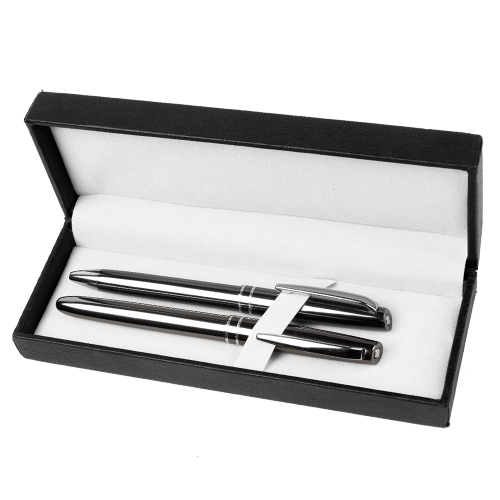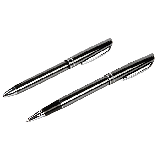Set de boligrafo y roller ball de aluminio anodizado de tinta negra, con detalles cromados. repuesto de metal tipo parker