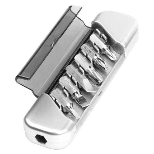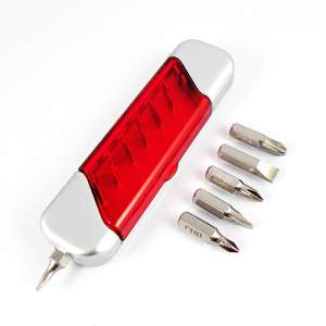 Set de desarmadores (6 puntas), fabricado en plastico, colores: humo, azul y rojo