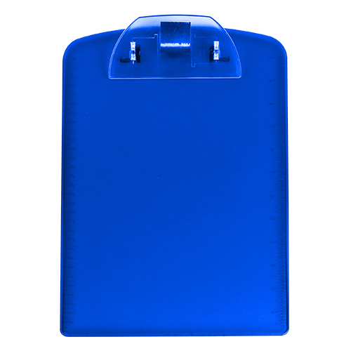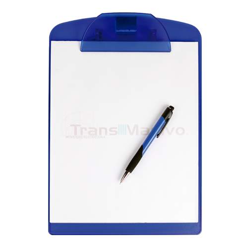 Tabla de plastico con clip porta documentos, colores: gris, blanco, azul y rojo