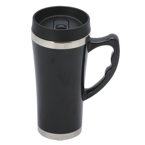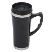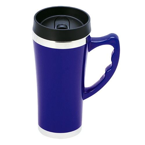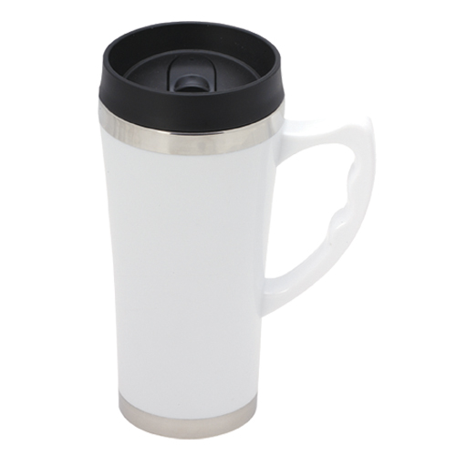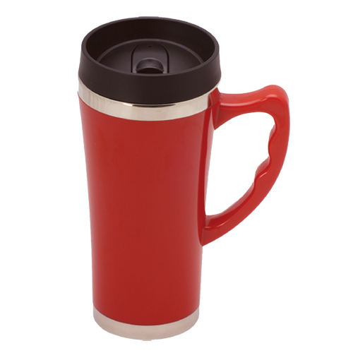 Taza termica de acero inoxidable con cubierta de plastico, tapa anti-derrame y capacidad de 500 ml, colores: blanco, negro, rojo y azul