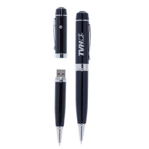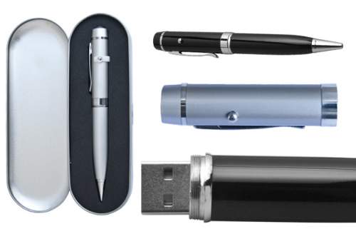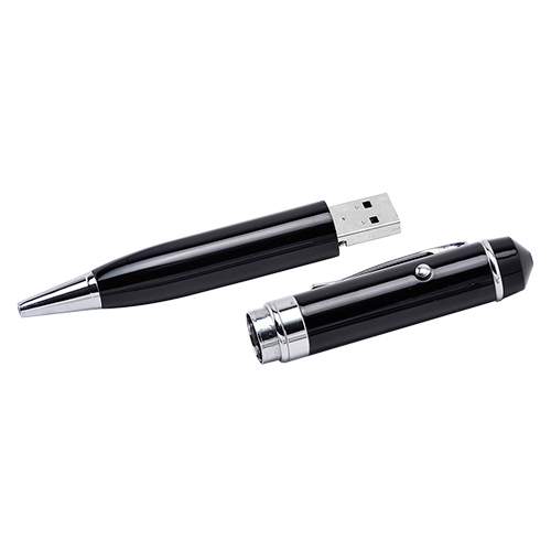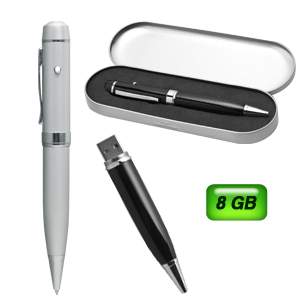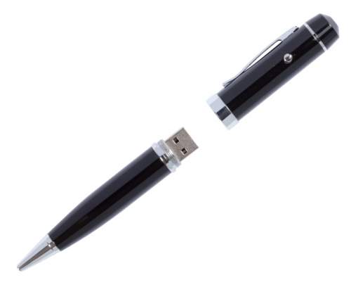 Memoria USB Executive de 4 GB en forma de bolígrafo incluye señalador laser y estuche metalico, tinta color negro.