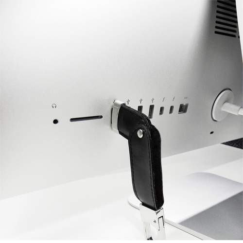 Llavero de curpiel color negro con usb de 8 gb